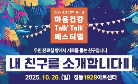 교육 ‘2025 정신건강의 날’ 맞아 마음 나누는 토크페스티벌 열린다 대한신경정신의학회와 대한정신건강재단은 ‘2025 정신건강의 날’을 맞아 오는 10월 ‘마음건강 Talk Talk 페스티벌 - 내 친구를 소개합니다Ⅱ’를 개최한다. 이번 행사는 정신건강의학과 의사, 환우, 시민, 그리고 사회 각계의 인사들이 한자리에 모여 마음을 나누고 위로를 전하는 공감의 장으로 마련됐다.지난해 첫선을 보인 &lsq... -